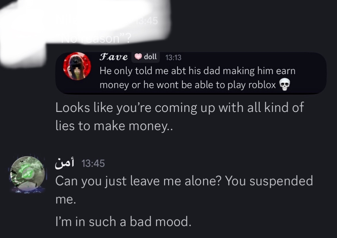 At Nourity Corporation, we take scamming very seriously. The user’s actions broke multiple Discord Terms of Service, and therefore resulted in our decision to put him on our records.